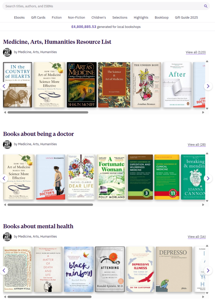 Browse the list and see where it takes you. Did you know, you can also visit our online bookshop and buy some of the titles featured in the Medicine, Arts, Humanities Resource List. Doing so supports local bookshops via Bookshops.org and also supports this site.